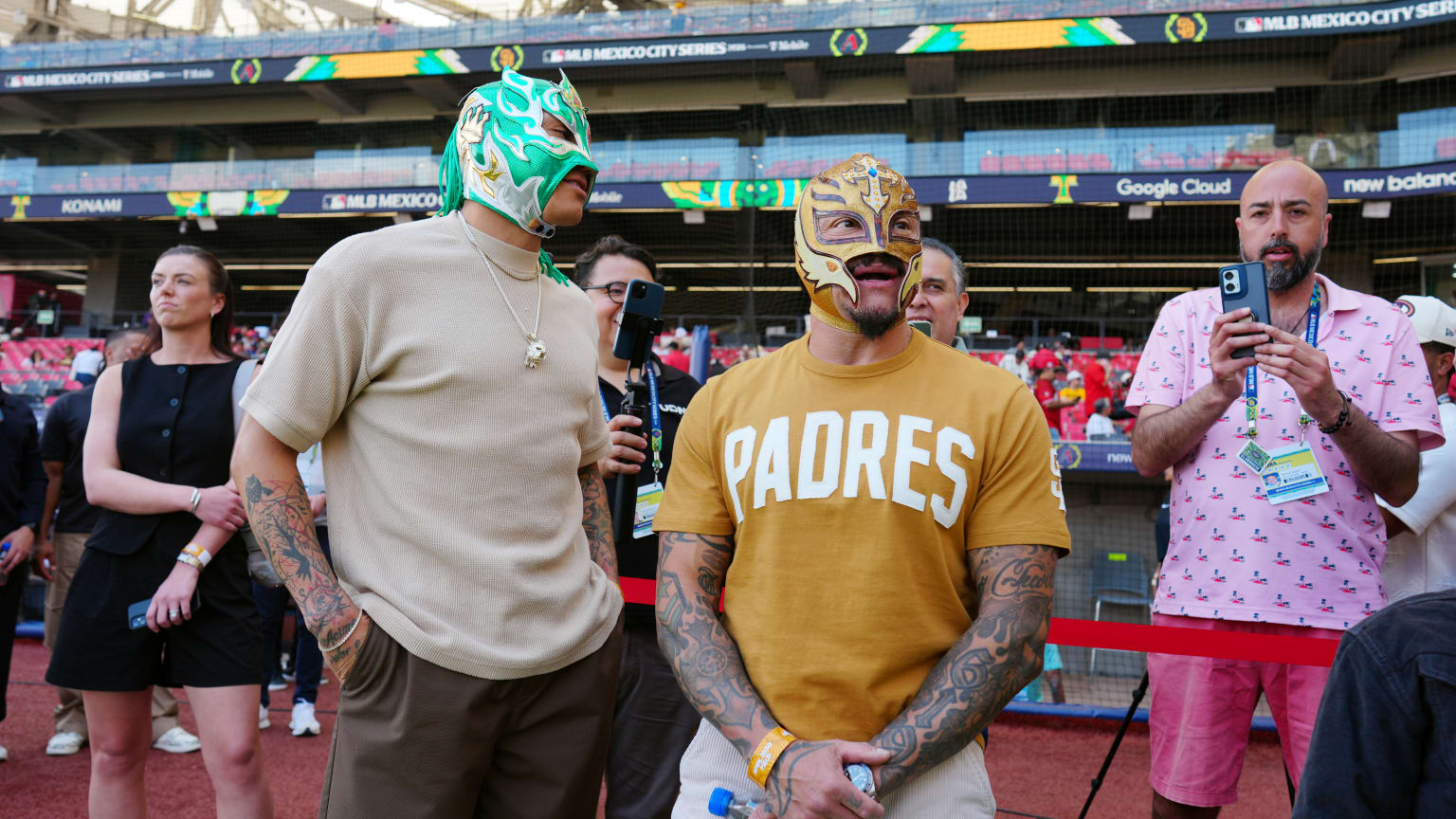 Al fin y al cabo, la “lucha” de este fin de semana no es en un cuadrilátero, sino en el terreno de béisbol más importante del Distrito Federal entre San Diego y Arizona. Con eso en mente, los luchadores se dieron abrazos en el montículo, para darle paso al espectáculo del bate y la bola.