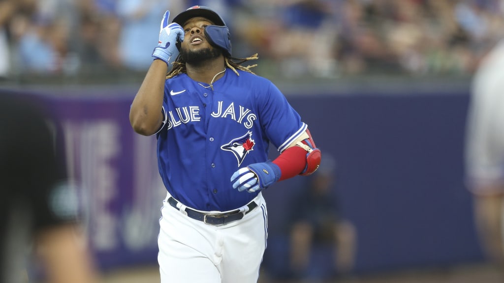 Con el inicio de la serie entre los Azulejos y los Angelinos el martes en Anaheim, el dominicano Vladimir Guerrero Jr. viste un accesorio especial.