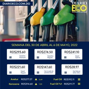 SANTO DOMINGO, RD.- El Gobierno dominicano informó este viernes que con un monto de RD$1,060 millones subsidió los precios de los combustibles para evitar el alza por hasta RD$100 durante esta semana del 30 de abril al 6 de mayo 2022.