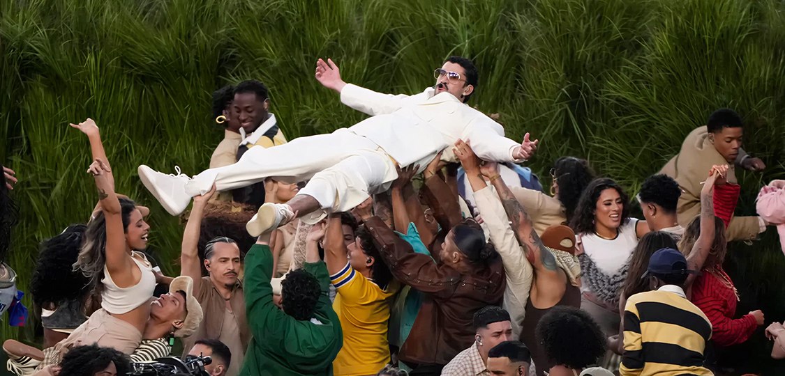 La actuación de Bad Bunny fue una celebración de la diversidad cultural, con un repertorio mayormente en español que destacó elementos de su herencia puertorriqueña y latina, así como invitaciones especiales a artistas como Lady Gaga y Ricky Martin durante partes de la presentación. El momento culminante llegó con la enumeración de países tales como Chile, Argentina, Uruguay, Paraguay, Bolivia, Perú, Ecuador, Brasil, Colombia, Venezuela, Guyana, Panamá, Costa Rica, Nicaragua, Honduras, El Salvador, Guatemala, México, Cuba, República Dominicana, Jamaica, Haití, Las Antillas, Estados Unidos, Canadá y Puerto Rico, acompañados de sus banderas, en una reinterpretación de lo que significa “América” más allá de los límites de Estados Unidos.