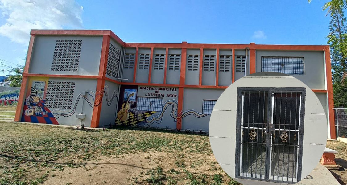 Moradores afirman que en la escuela, inaugurada con la finalidad de que los estudiantes aprendan a fabricar instrumentos musicales de forma artesanal, acuden cuatro empleados; dos hombres y dos mujeres, «de vez en cuando».