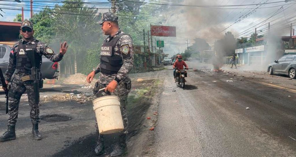 Agentes recogen escombros producto de la huelga en el Cibao