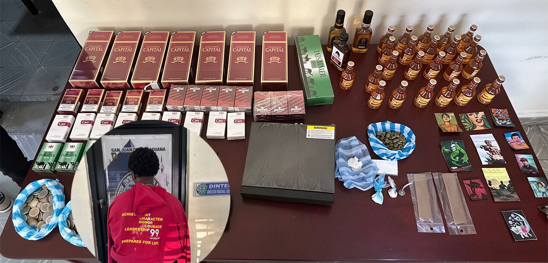 Indicó que hallaron en el interior de una gaveta una funda que contenía dos porciones de marihuana con un peso aproximado de 11.0 gramos y una porción de presunto crack con un peso aproximado de 12.0 gramos. También se ocupó una pistola de juguete color negro, un radio de comunicación y un total de 2,340 cigarrillos distribuidos entre cajetillas de diferentes marcas.