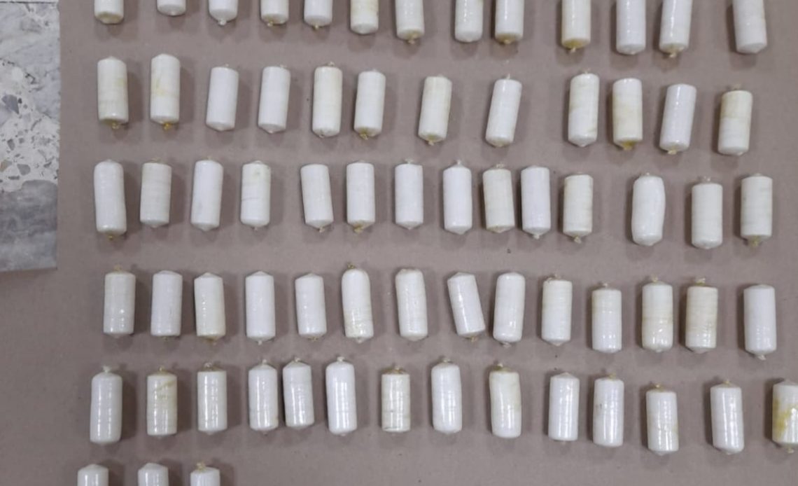 La DNCD explicó mediante un comunicado de prensa que tras varios días, en el centro hospitalario, el hombre logró expulsar 83 bolsitas de cocaína, en forma cilíndricas, que llevaba en sus vías digestivas.