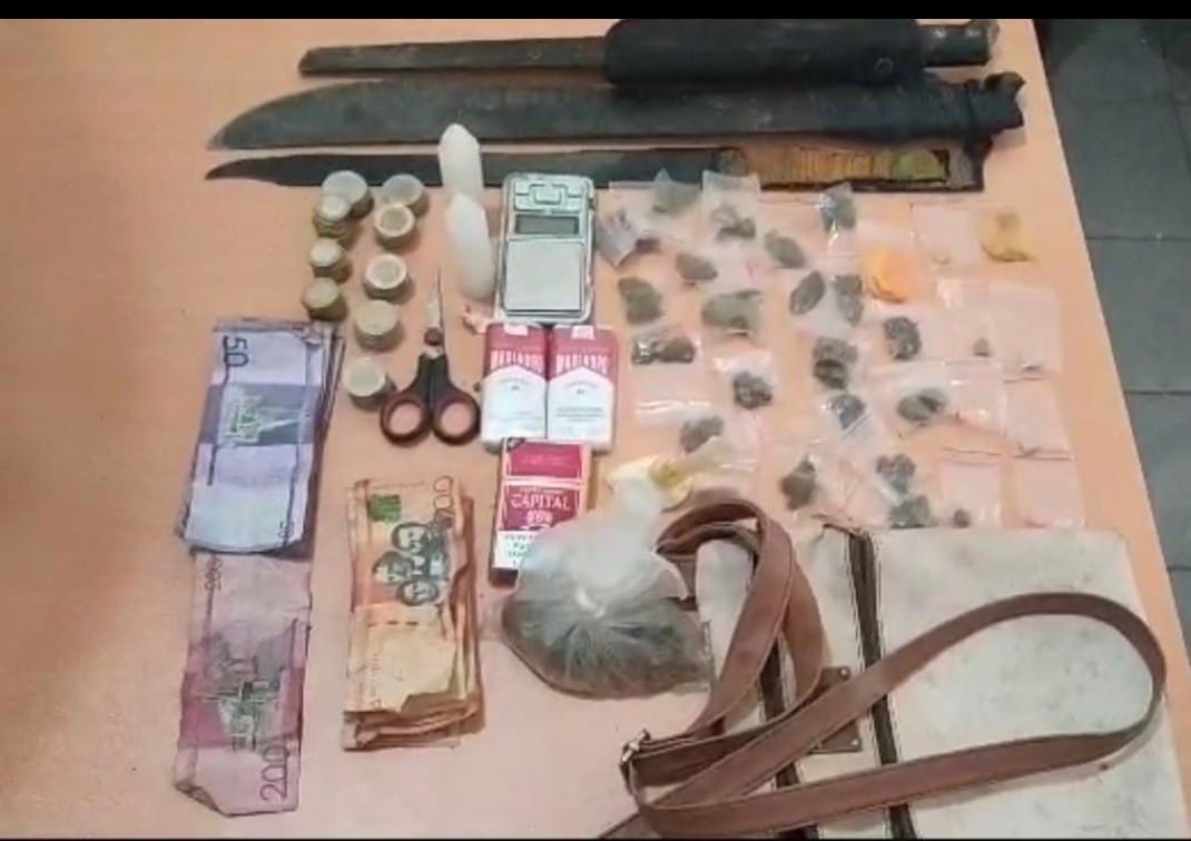 En dicho lugar se ocupó 60 gramos de distintas sustancias narcóticas (drogas),16 pastillas presumiblemente de éxtasis, la suma de 2,260 pesos en efectivo, una balanza, tres cajetillas de cigarrillos, armas cortopunzantes, entre otros objetos.