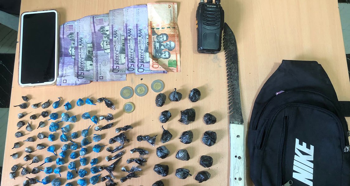 De acuerdo al reporte de las autoridades, los detenidos, a quienes también le fueron ocupado un radio de comunicación, un arma corto punzante y otras evidencias, fueron identificados como Wilfredo Batista Peralta, de 19 años, y Máximo Mateo, de 40, quienes fueron sorprendidos en flagrante delito en el sector San Francisco.