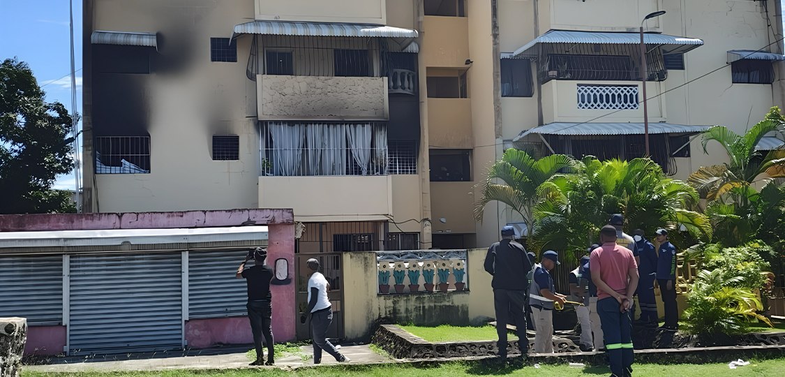 Mientras que el víctimario como Yelin Manolin Félix Vargas, de 47 años. El incendio se produjo en el edificio 2-A, ubicado en residencial de la avenida San Vicente de Paul, perteneciente al sector de Maquiteria.