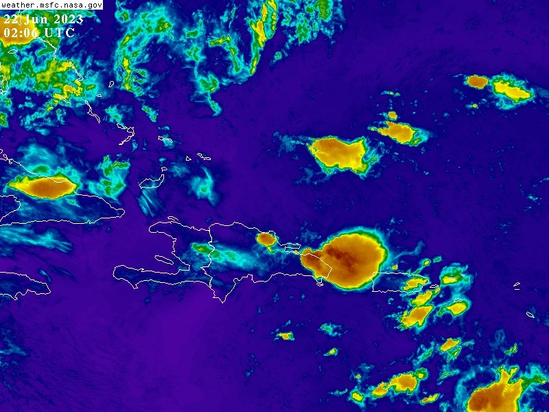 A esta hora de la noche, la aproximacion de una onda tropical continúa incrementando la nubosidad favoreciendo la ocurrencia de aguaceros moderados a fuertes en ocasiones, con tormentas eléctricas y aisladas ráfagas de viento pic.twitter.com/cFBv3czWO1— Oficina Nacional de Meteorología (@ONAMET_RDO) June 22, 2023