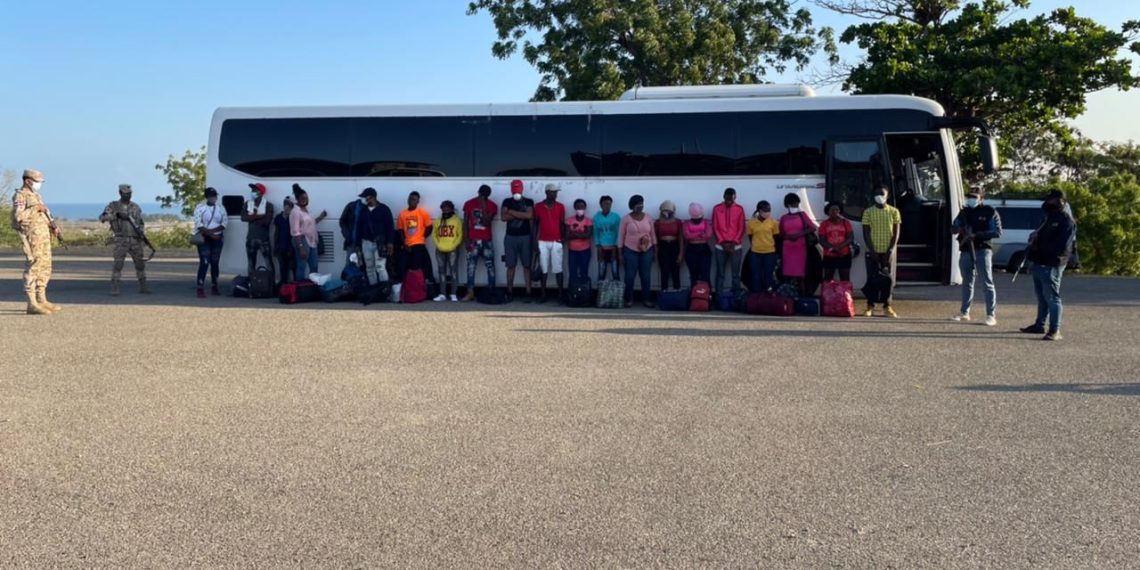 La detención se llevó a cabo mientras el detenido se desplazaba a bordo del autobús marca Hyundai, mientras transportaba 27 nacionales haitianos con estatus migratorio irregular, en violación a la Ley General de Migración 285-04 y su reglamento de aplicación 631-11, entre ellos diez de sexo masculino, diez femeninas y siete menores de edad.