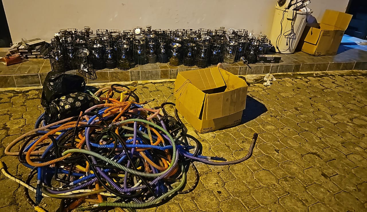 Los miembros actuantes, quienes también contaron con el respaldo de agentes de la Dirección Central de Prevención y de la Unidad SWAT, ocuparon 72 hookahs, 81 mangueras de hookahs, 293 copas de hookahs, 11 cajas de carbón de hookahs y 9 cajas de tabaco para hookahs.