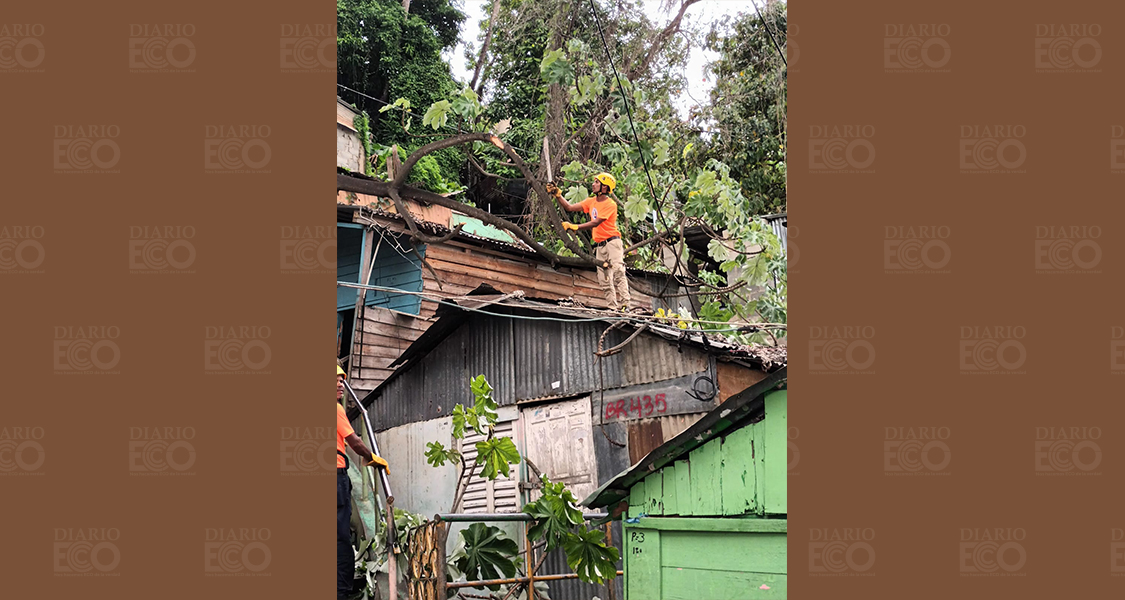 «Remoción de árbol que cayó sobre una vivienda en la rivera del #RioOzama…Afortunadamente no se reportan víctimas», escribió la Defensa Civil en su cuenta de Twitter.