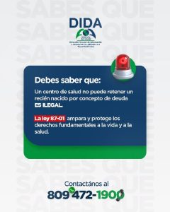 DIARIO ECO/SANTO DOMINGO, RD.- La Dirección General de Información y Defensa de los Afiliados de la Seguridad Social (DIDA) denunció que es «ilegal» la retención de un recién nacido o cualquier persona en centros médicos por concepto de deuda, una práctica recurrente en el país.