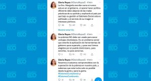 SANTO DOMINGO, RD.- Debido a los constante ataques que ha hecho la exvicepresidenta de la República, Margarita Cedeño a la administración de la actual gestión, la directora del programa Supérate, antiguo Progresando con Solidaridad, Gloria Reyes, arremetió en su contra este jueves, mediante una hilera de tweets colgados en su cuenta.