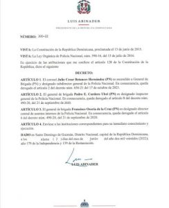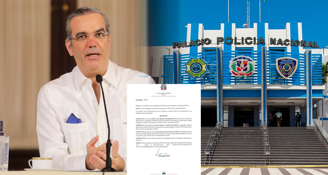 Mediante el decreto 300-22, del 7 de junio, el presidente Luis Abinader, designó al general de brigada Julio César Betances Hernández como subdirector general de la Policía Nacional, además, nombró al general de brigada Pedro E. Cordero Ubrí como inspector general de la institución del orden.