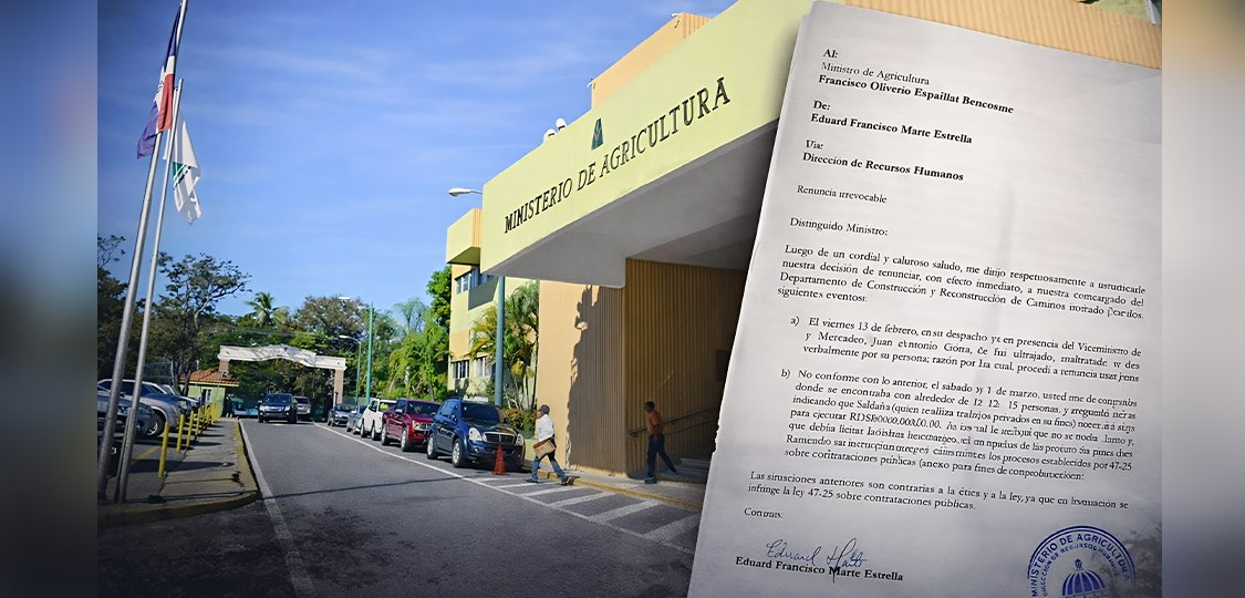 DIARIO ECO/SANTO DOMINGO, RD.- Ha sido revelada la carta de renuncia de un empleado del Ministerio de Agricultura alegando presiones que recibía para adjudicar obras a empresas sin los debidos procesos de licitación.
