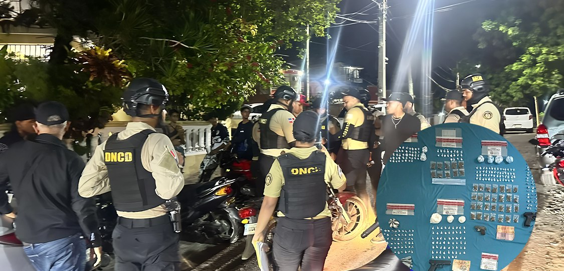En el transcurso de las intervenciones efectadas por agentes de la Dirección Nacional de Control de Drogas (DNCD), bajo la coordinación de fiscales de la referida demarcación, lograron confiscar un total de 2,022 gramos, entre ellos 1,829 corresponden a presunta cocaína y 193 a marihuana, así como 03 armas de fuego, con sus cargadores y varias cápsulas, dos balanzas, 04 celulares, fundas, tijeras, dinero en efectivo y otras evidencias vinculantes con el tráfico y venta de sustancias controladas.