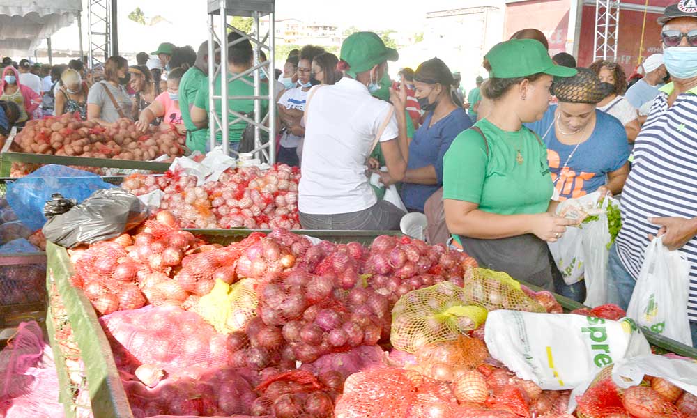 Los que asistan a la feria podrán comprar el cartón de huevos a 90 pesos, pollos a 150, gallinas a 100 pesos, plátanos y guineos a uno; papas a 10 pesos la libra, arroz selecto a 20 la libra, ajo a 100 la malla, cebolla a 25 la libra, habichuelas rojas de 800 gramos a 110 y la gallina gigante a 300 pesos, medio galón de aceite a 280 y el saco de 25 libras de arroz a 500, junto a otros productos.