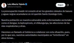 Tejeda, mediante una publicación en su cuenta de X, pidió al presidente Luis Abinader que accione frente a este flagelo, porque, a su entender, el alcalde Dío Astacio parece estar distraído en otros asuntos.