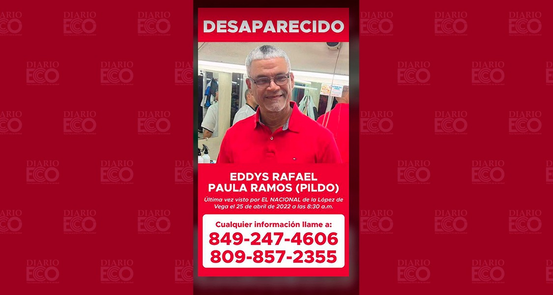 SANTO DOMINGO, RD.- Familiares del señor Eddy Rafael Pauna Ramos, mejor conocido Pildo, lo reportaron la mañana de este martes como desaparecido.
