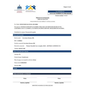Lorenzo agrega que en el documento, acordaron ofrecer un menú alimenticio a 1,074 empleados del Ministerio de Hacienda.