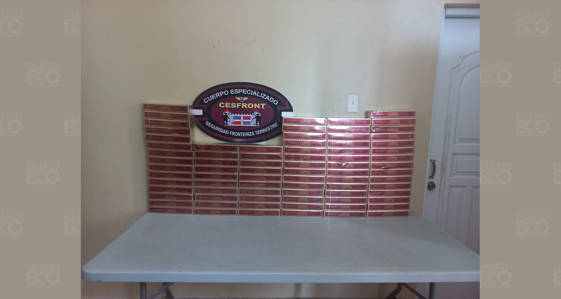 ELÍAS PIÑA, RD.- El Cuerpo Especializado de Seguridad Fronteriza Terrestre (CESFront), incautó ayer domingo 78 paquetes de cigarrillos marca Capital, los cuales fueron desplazados a bordo de una motocicleta por individuos desconocidos de manera ilegal desde Haití al territorio nacional, en Elías Piña.