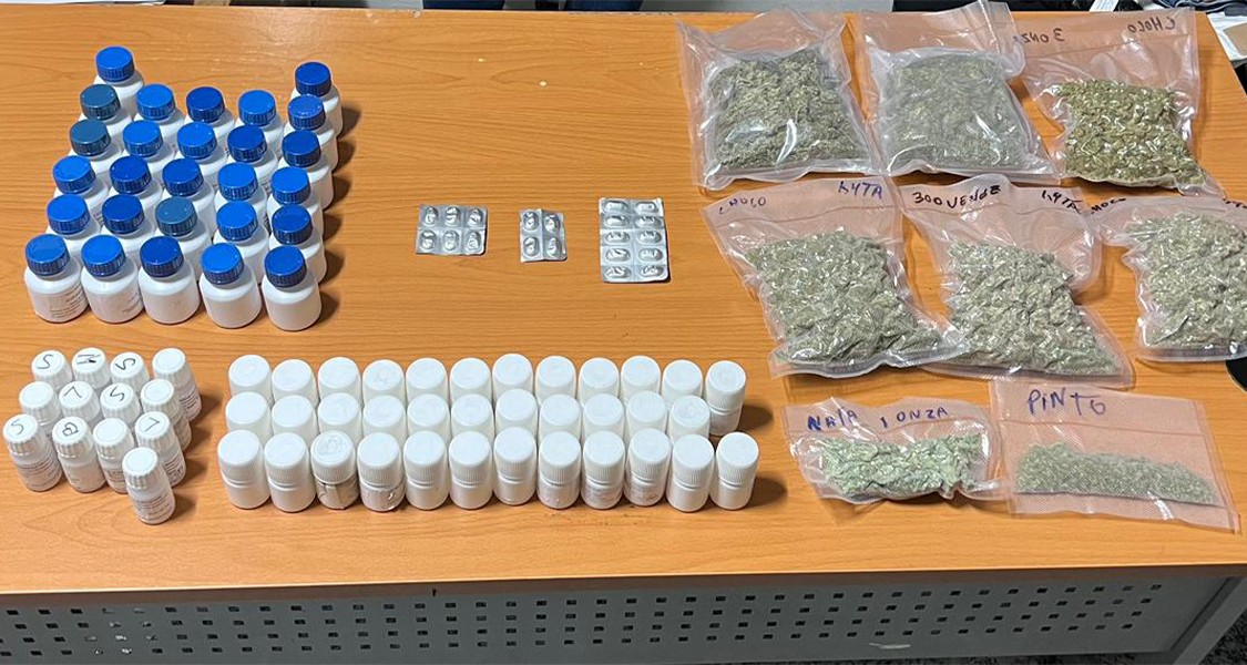 En presencia de un fiscal se procedió abrirla, encontrando en su interior camuflados en prendas de vestir, ocho paquetes presumiblemente marihuana, 75 envases plásticos conteniendo un líquido, que tras ser sometido a una prueba de campo, dio positivo a Metadona, así como 20 pastillas de Tranxilium, ambos medicamentos controlados en República Dominicana, por la ley 50-88.