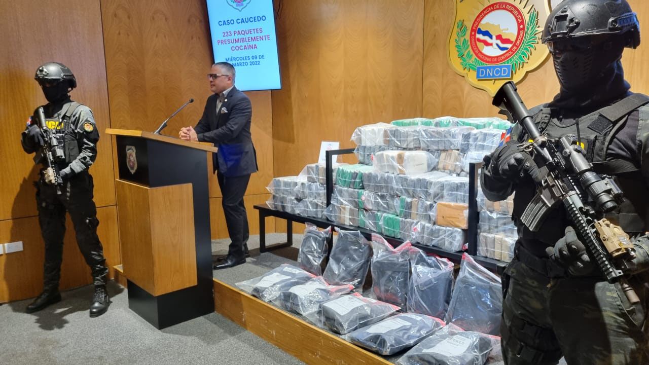 SANTO DOMINGO, RD.- Fueron incautados por la Dirección General de Control de Drogas con el apoyo de la Seguridad Militar del Puerto Multimodal Caucedo, agencias de inteligencia y bajo la coordinación del Ministerio Público, 233 paquetes de una sustancia presumiblemente cocaína.