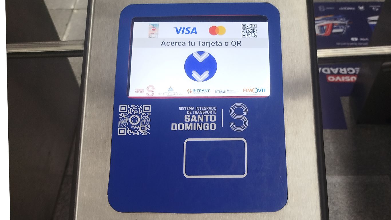 El Sistema de Transporte Santo Domingo colocó un carril exclusivo para efectuar este nuevo método de pago. Dicha modalidad se está implementando de manera gradual; en la fase 1 operan solo 11 estaciones del metro y el Teleférico Línea 1, las cuales cuentan con las validadores electrónicos habilitados para tarjetas de crédido, débito VISA, además de todas las que contengan tecnología EMV, así como las que tengan el signo de WIFI en exterior, al igual que la billetera digital.