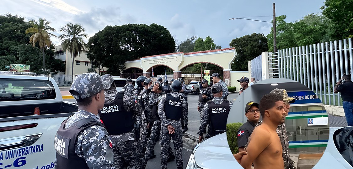 De acuerdo con el informe policial, el presunto autor de ocasionar las heridas por arma de perdigones fue identificado como Alexander Jiménez Galván, de 35 años, residente en Santo Domingo Oeste, quien fue detenido inmediatamente con ayuda de personal que trabaja en la alta casa de estudio.