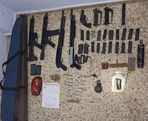 El DINTEL señala que los individuos se desplazaban en un vehículo marca KIA, modelo K5, de cuyo interior fueron ocupados un fusil marca AM-15, multi calibre; cinco pistolas y dos revólveres.