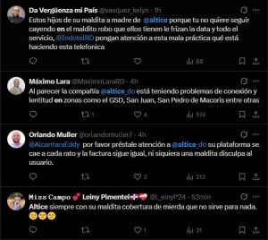DIARIO ECO/SANTO DOMINGO, RD.- A través de las redes sociales, usuarios de Altice Dominicana han reportado desde tempranas horas de este viernes interrupciones y lentitud extrema en servicio de internet móvil y fijo.