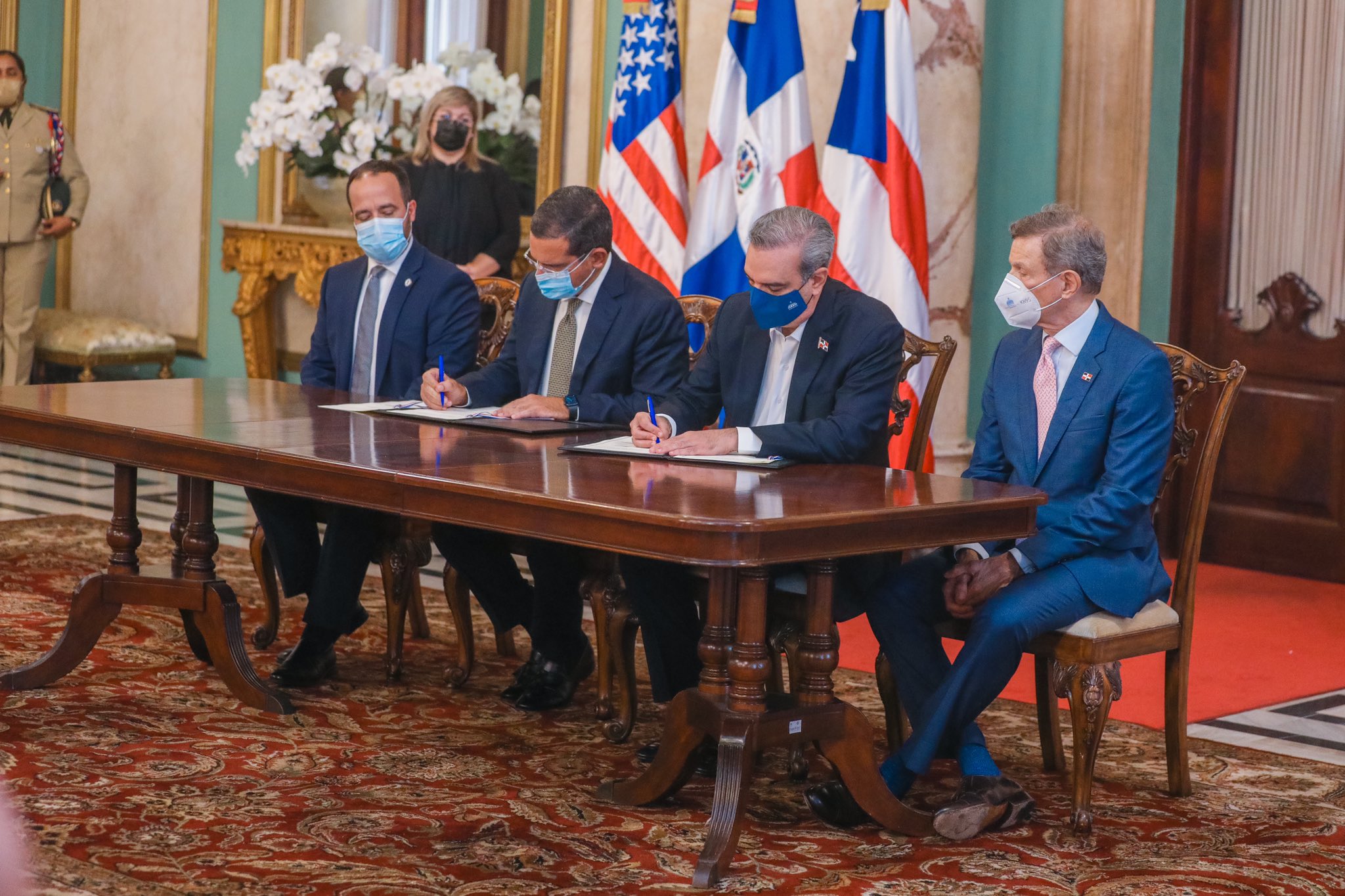 SANTO DOMINGO, RD.- Luego de haber sostenido una reunión en el Palacio Nacional a puertas cerradas, el presidente de la República Dominicana, Luis Abinader y el gobernador de Puerto Rico, Pedro Pierluisi, firmaron una declaración conjunta para una alianza estratégica entre ambos países que posibilitará estrechar aún más los lazos que los une y el intercambio en diferentes ámbitos para el desarrollo de ambas naciones.