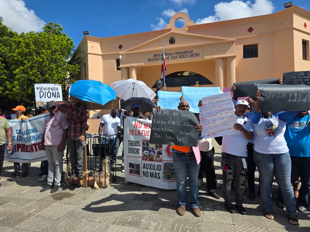 DIARIO ECO/SANTO DOMINGO, RD.- Bajo la cosigna «reubicación, casa por casa», decenas de residentes en diferentes sectores del municipio Santo Domingo Este, y varias organizaciones, protestaron este lunes frente al Palacio Nacional, en demanda de ser reubicados por parte de la Unidad Ejecutora para la Readecuación de Barrios y Entornos -URBE-, del Estado.