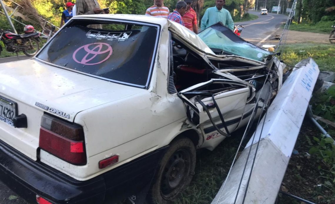 Precisan que el hecho ocurrió cuando el chofer de un carro marca Toyota Corolla, perdió el control del mismo e impactó contra un poste del tendido eléctrico.