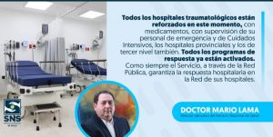 La información fue dada a conocer por el director del servicio, el doctor Mario Lama, quien dijo que todos los hospitales traumatologicos están dotados de equipos tanto de Emergencias, como de las Unidades de Cuidsdos Intencivos (UCI).