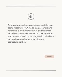 «Resulta necesario aclarar que los señalamientos difundidos no reflejan la realidad de la gestión desarrollada en el Instituto Tecnológico de Las Américas (ITLA), ni de mi manera de ser», declaró.