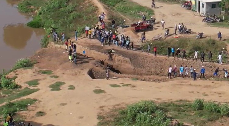 Ciudadanos haitianos están sellando el paso de agua desde el río Masacre, como exigió el Gobierno dominicano, después del cierre fronterizo ejecutado por el Cuerpo de Seguridad Fronteriza Terrestre (CESFRONT) por orden del presidente @luisabinader 🇩🇴📢 pic.twitter.com/1VM7OZth51