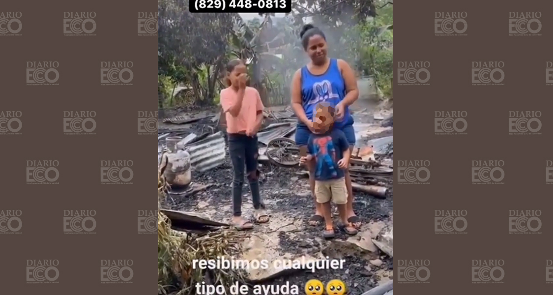 BONAO, RD.- Una niña, junto a su madre y hermanito pidió ayuda tras quemarse en su totalidad su casa situada en Sabana del Puerto, Bonao.