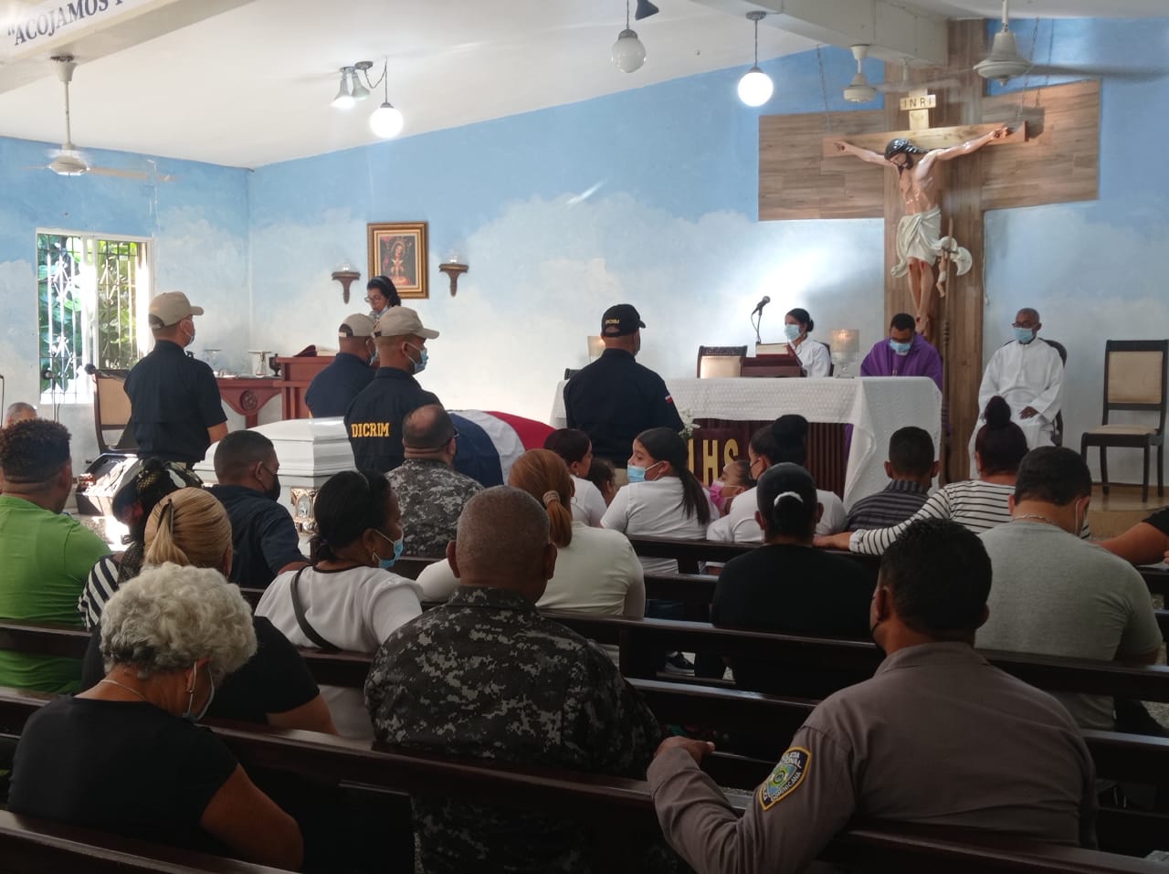 El padre Lorenzo Vargas de la capilla Santa Rosa de Bonao, ofició una misa en memoria del capitán, quién comandaba el cuartel policial del municipio de Piedra Blanca.
