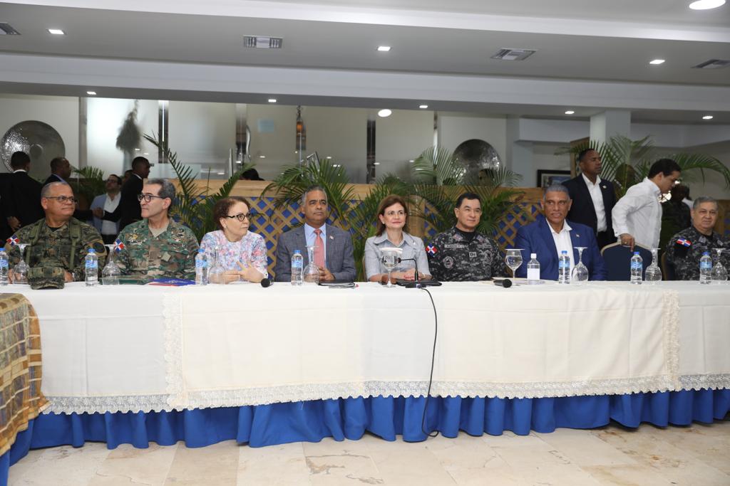En compañía de la vicemandataria, están presentes el ministro de la Presidencia, Joel Santos Echavarría; de Defensa, teniente general Carlos Luciano Díaz Morfa; de Interior y Policía, Jesús Vásquez Martínez; el director general de la Policía Nacional, mayor general Eduardo Alberto Then; el comandante general del Ejército de República Dominicana -ERD-, mayor general Carlos Antonio Fernández Onofre, y el titular de la Dirección Nacional de Control de Drogas -DNCD-, vicealmirante José Cabrera Ulloa.