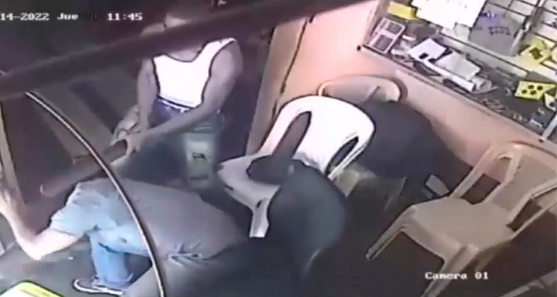 En un audiovisual se observa como el individuo golpea al dueño del negocio -un centro- identificado como Toni, dejándolo inconsciente.