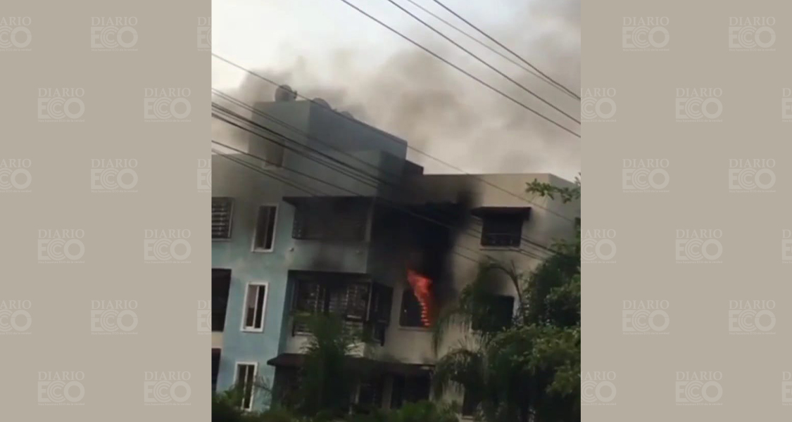 A través de un video se puede ver como el fuego sale por la ventana de aparentemente una tercera, extendiéndose hasta la otra casa de arriba.