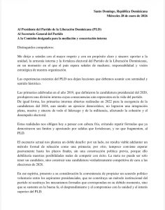 «Estas realidades nos obligan hoy a pensar con cabeza fría, evitando repetir formulas que ya demostraron sus limites y apostando por salidas que fortalezcan, y no que fragmenten, al PLD», destacó, al tiempo de exponer que el escenario actual les plantea un doble desafío: «por un lado, no resulta viable adelantar un método formal de selección como una primaria, por otro, tampoco conviene esperar pasivamente hasta los plazos finales, sin una construcción política previa, porque ello debilitaría nuestras posibilidades reales de competir con éxito».