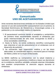 DIARIO ECO/SANTO DOMINGO, RD.- En respuesta a las declaraciones del presidente de los Estados Unidos, Donald Trump, sobre que el uso de paracetamol (acetaminofén) durante el embarazo cause autismo, la Sociedad Dominicana de Obstetricia y Ginecología (SDOG) dijo que hasta el momento no hay evidencia ciéntifica concluyente que demuestre que dicho fármaco guarde relación con la referida enfermedad.